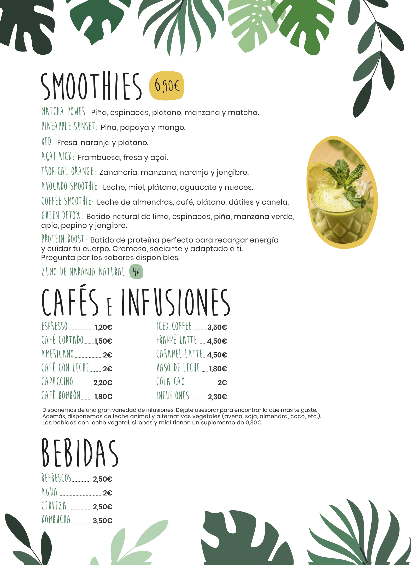 SMOOTHIES, CAFÉS, INFUSIONES Y BEBIDAS